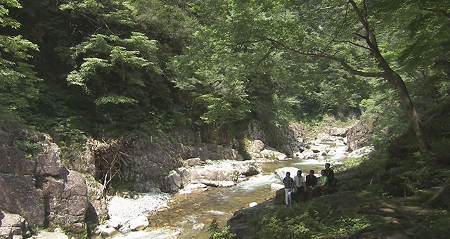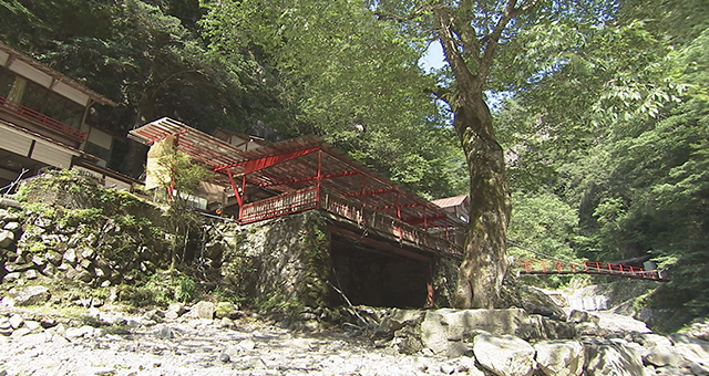 先人が切り開いた約16kmの山道を、涼を求めて歩きます。渡船に乗って行くのは、戦後すぐに建てられた秘境の中に佇む茶店。