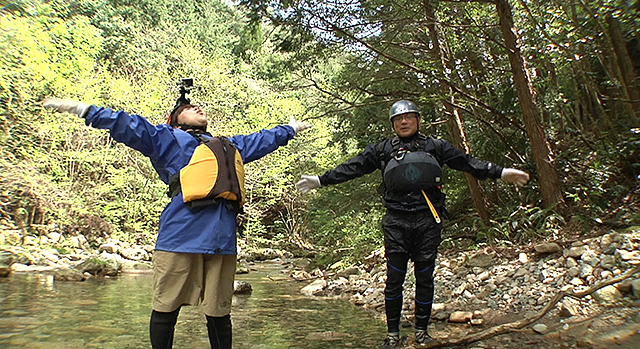 岩国市にある「寂地峡」で、ナベさんは山辺を、松本は川の中をトレッキング!