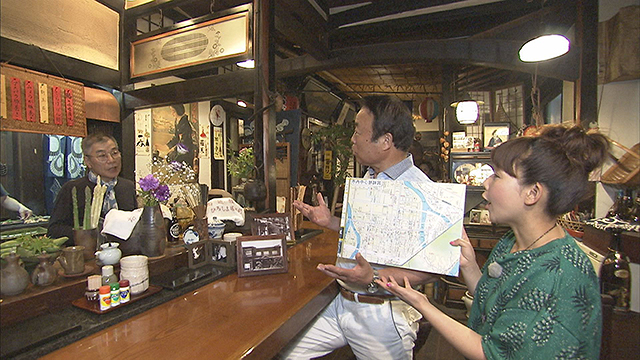 思わず「へ~」が飛び出す「とうかさんクイズ」で歴史を紐解きます。昭和の地図を手に街歩き!「右近旅館」があった場所を訪ねると、そこには昭和のままの建物が!今は炭火焼の店になっている「右近」。まるで隠れ家のような空間で絶品料理をいただきます。