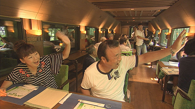 クライマックスは、今年4月に誕生したばかりの香川・徳島をめぐる観光列車「四国まんなか千年ものがたり」に乗車。車窓から大自然の絶景を眺め、駅ごとに繰り広げられるおもてなしに大興奮!