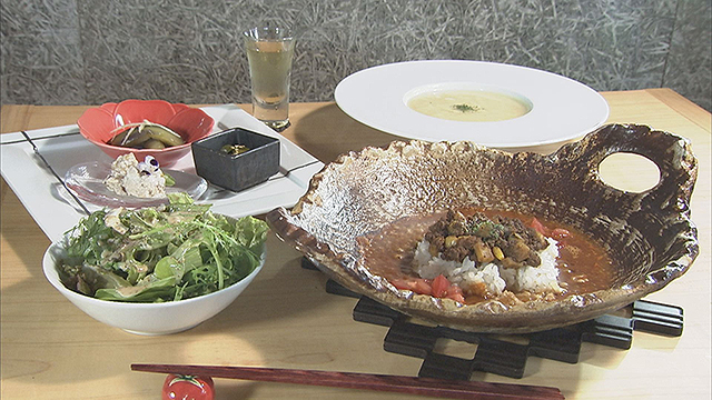 里山満喫カレーと地元野菜を使ったスイーツをいただきます。