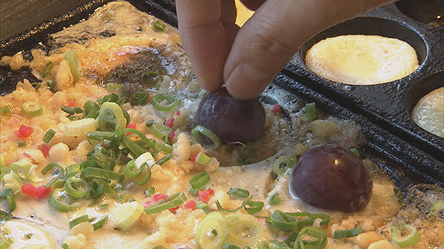 秋の味覚・ピオーネが入ったアツアツたこ焼きや、お肉たっぷりの揚げたてコロッケがいただける精肉店へ。