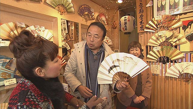 浅草では、名だたる歌舞伎役者が愛用する扇子屋を訪ね、名物高級牛鍋を堪能。