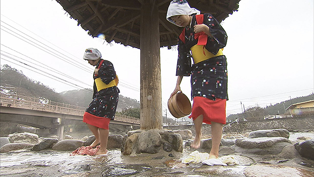 そして、湯見かおること松本裕見子は、岡山・奥津温泉へ。江戸時代に開かれたというこちらでは、春になると川沿いの温泉で「足踏み洗濯」が行われます。美人の湯に浸かって、松本は益々美しくなる?