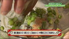 グリーンアスパラガス 2束(200g)固いところは切り、さっと塩ゆでして 1センチ長さの小口切りにする。