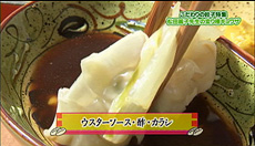 ④ウスターソースに酢、溶き辛子を入れた物、またはポン酢醤油にラー油を入れた物をつけていただく