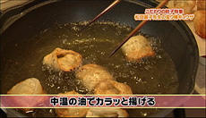 ②中温の油でカラッと揚げる