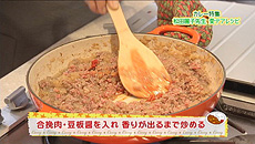 ②①に豆板醤を入れ香りが出るまで炒める