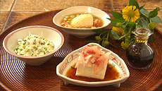 ②器に豆腐をのせ、上に①をのせて好みの量の酢じょうゆをかけていただく